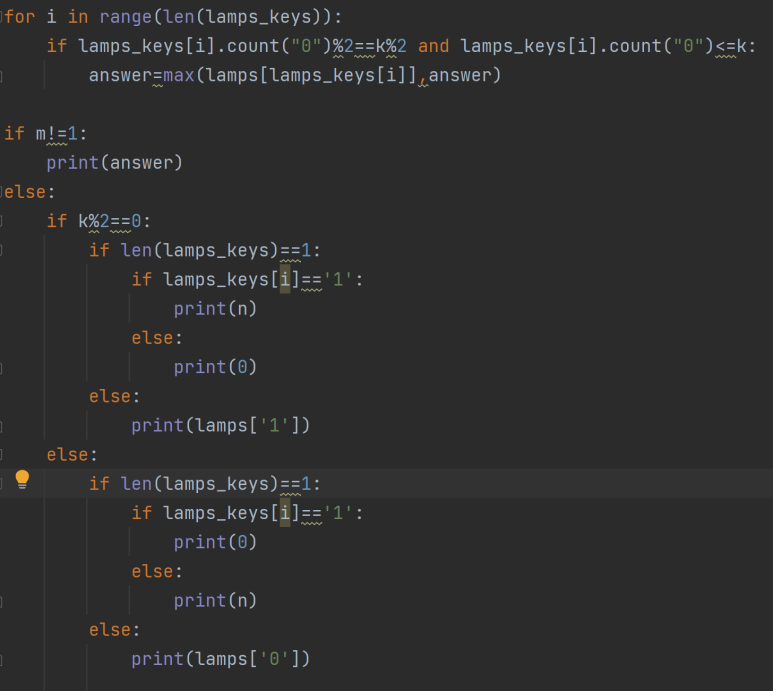 다만 0과 1이 모두 있을 때는, 경우의 수를 나눠 몇 개의 램프가 켜질지를 확인한다.