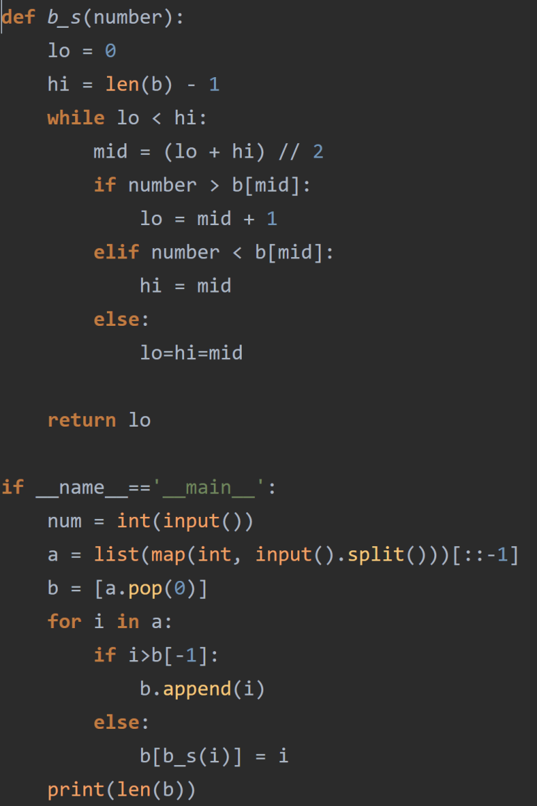 A2. 기존 O(n2)풀이에서 lis[i]를 dp에 저장했던 것과 달리 최대 값을 저장.