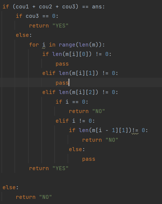 그렇게 센걸 더해서 개수가 안맞으면 0이 덩그러니 있는 것이니 당연히 NO.