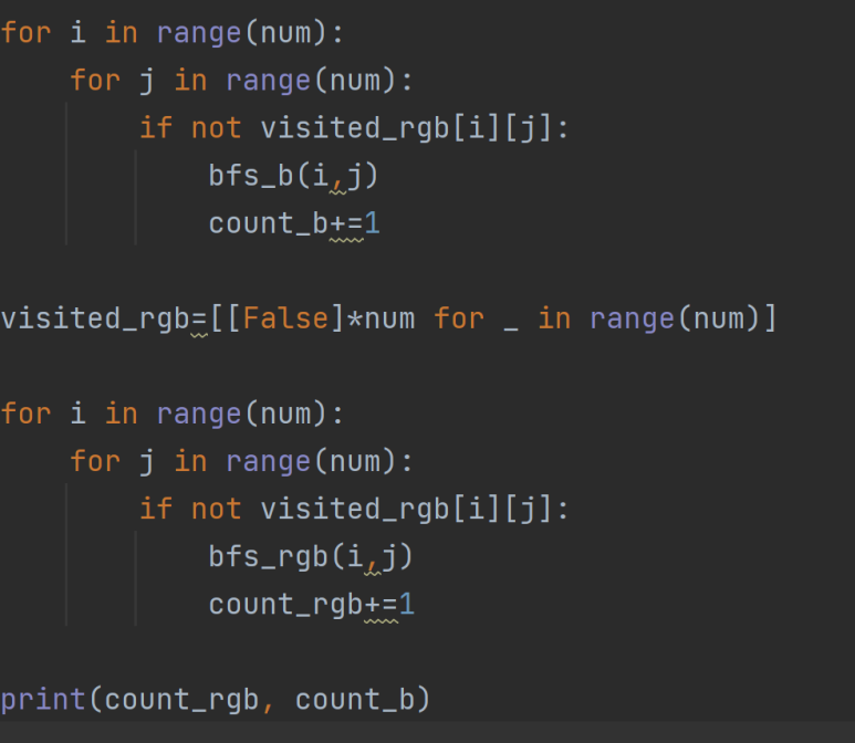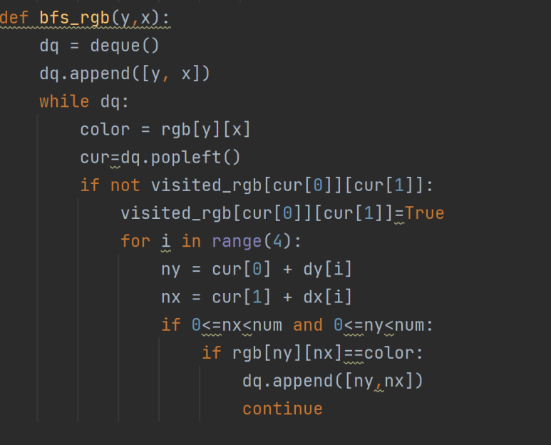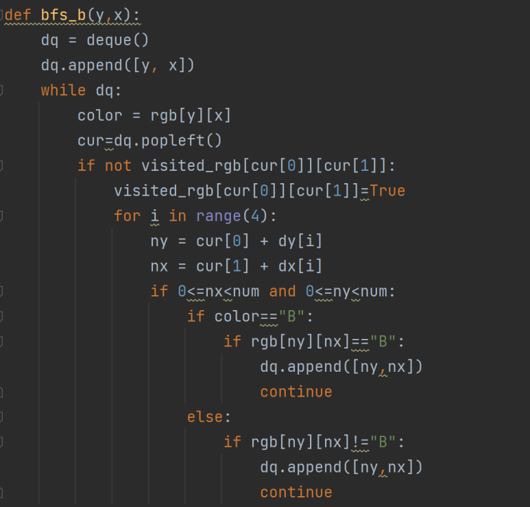 적록색약인 사람은 B냐 아니냐만 확인해 주면 되니 bfs가 다음과 같다.