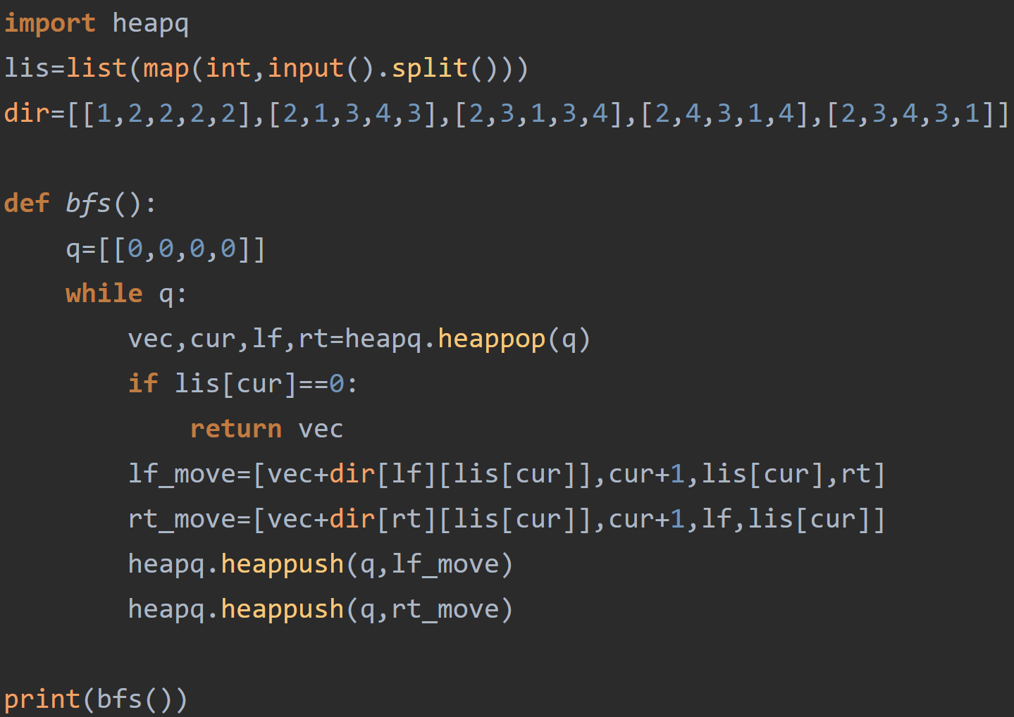 즉 heap을 만들어 최대한 비용이 적은 움직임을 먼저 하여 가장 먼저 끝난 것을 출력하는 것이었다.